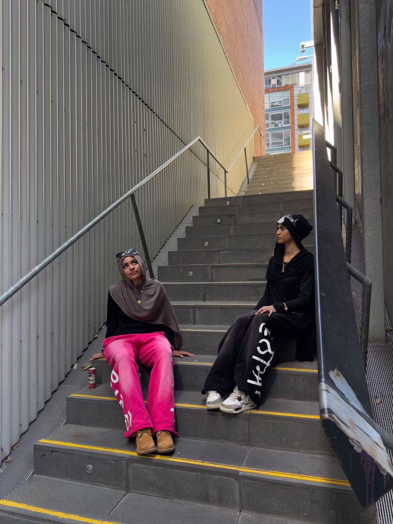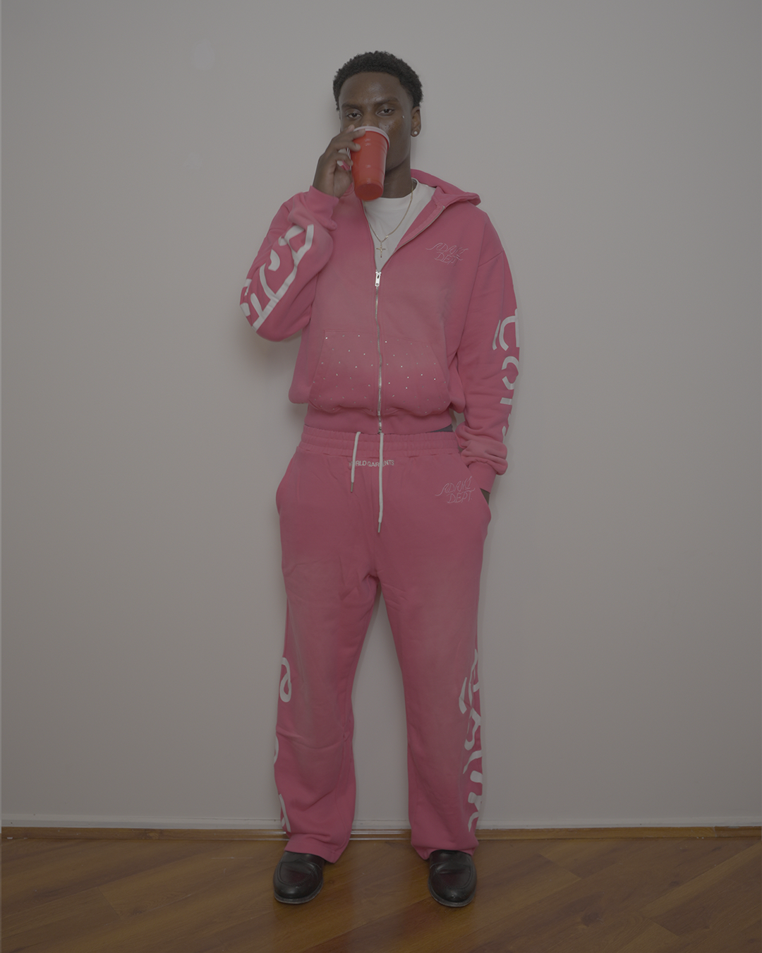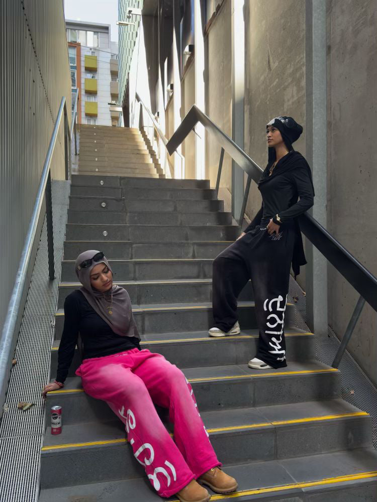 *Sizing guide: Fits baggy, size down one for regular fit. Model 1 is 5'10 wearing size M, Model 2 is 5'8 wearing size S hoodie & M bottoms (photo 1/2). Models 1 and 2 are both ~5'8 wearing size M (photo 3/4). Model is 5'10 wearing size M (photo 5).
